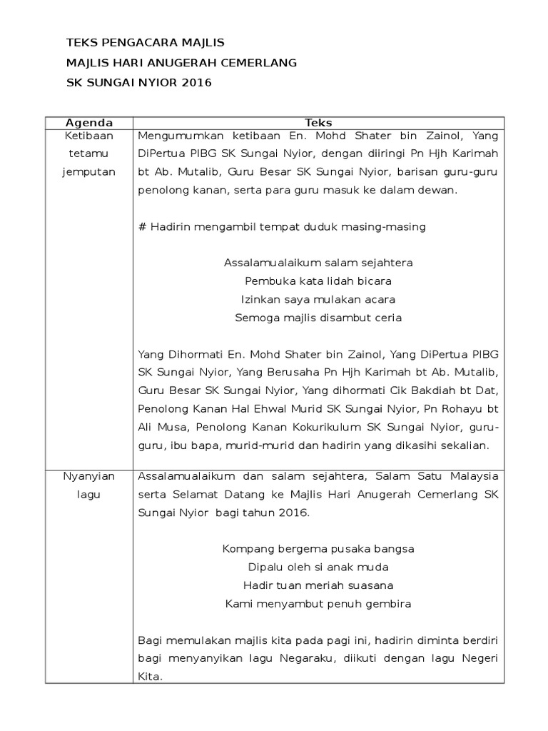 Teks Pengacara Majlis Hari Anugerah Kecemerlangan Pdf